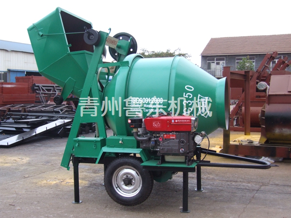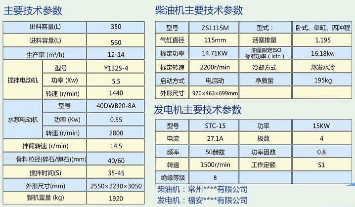 本機是針對偏遠無電地區,無法實現機械機械化施工而特別設計的,它的原理是在現有JZC350攪拌機基礎上加裝了一套柴油發電系統,由它為機器提供電力來###攪拌機工作。由于本發電系統輸出為15KW所以在###攪拌機正常工作的同時,還可對外提供部分電能用來帶動其它小型設備,如振動棒。為工作和夜間照明使用。